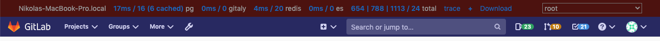 You can display the GitLab Performance Bar to see statistics for the performance of a page. When activated, it looks as follows: