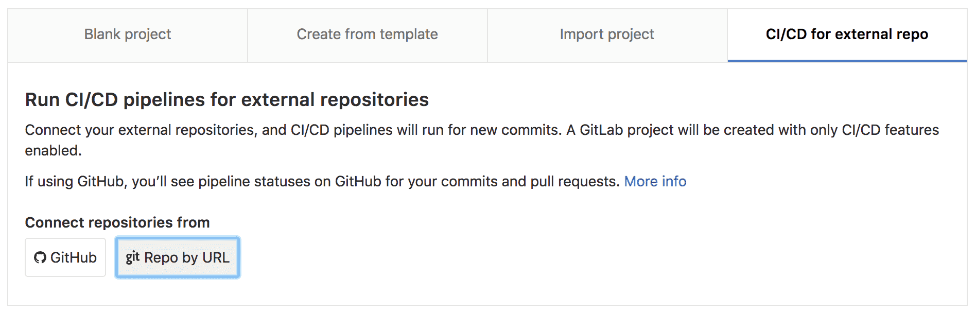 In GitLab create a **CI/CD for external repository**, select
