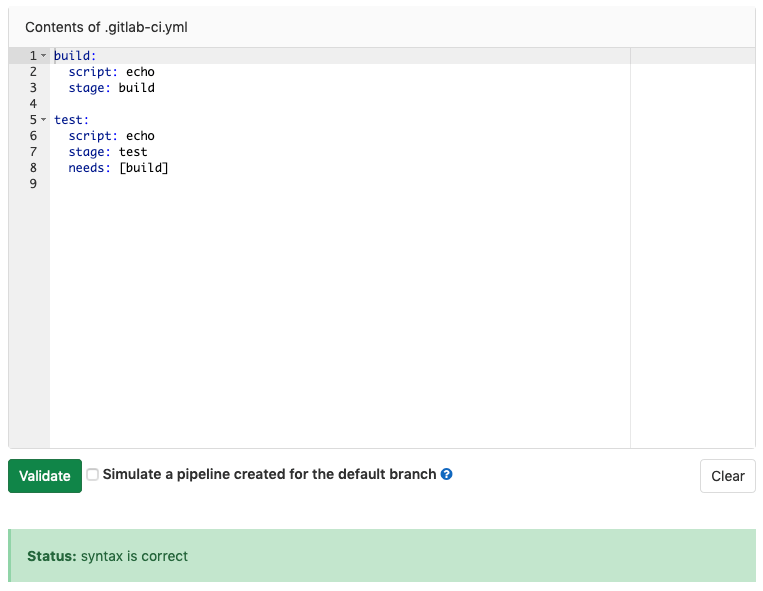 Validate .gitlab-ci.yml syntax with the CI Lint tool