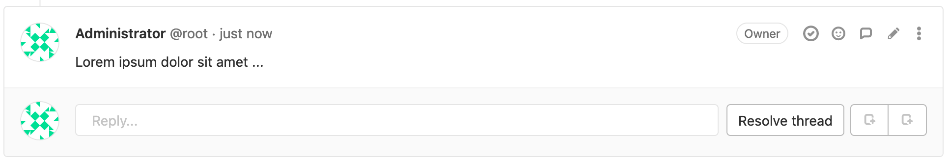 • Resolvable threads can be added only to merge request diffs.