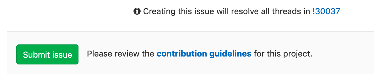 This directs you to a new issue prefilled with the content of the thread, similar to the issues created for delegating multiple threads at once. Saving the issue marks the thread as resolved and add a note to the merge request thread referencing the new issue.