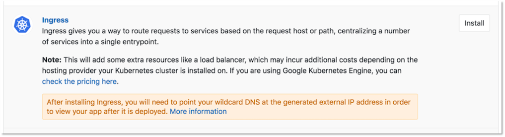 2. Click the Install button next to the Ingress application to install Ingress.
