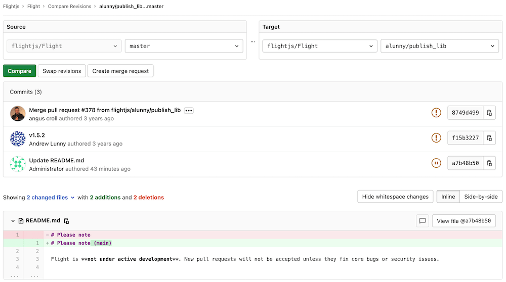 5. Click Compare to view the changes inline: